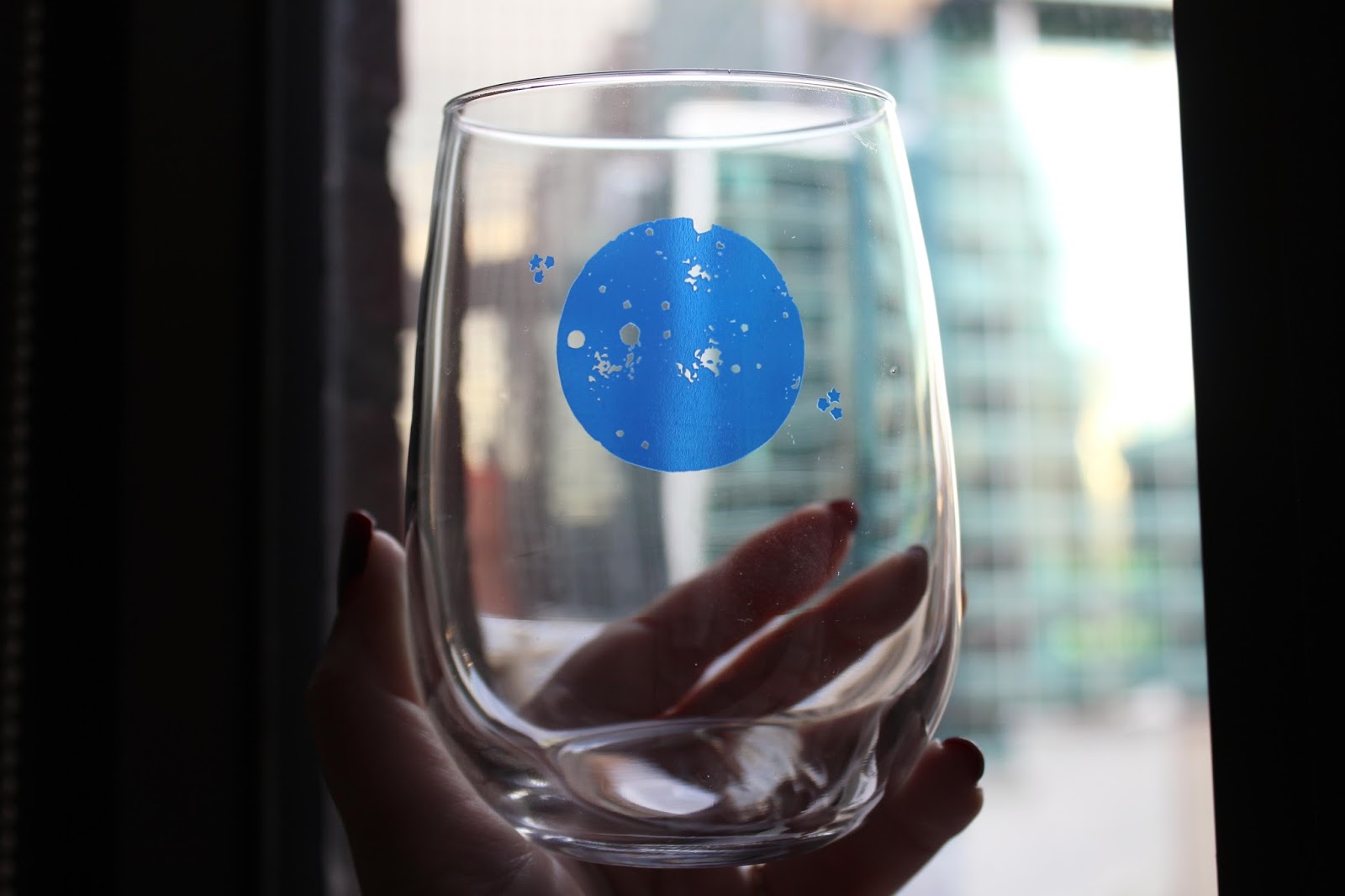 We used the same moon stamp to create the design for the stemless wine glasses we ordered.